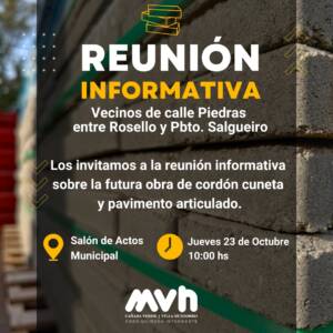 Invitamos a los vecinos y vecinas de calle Piedras, entre Rosello y Pbro. Salgueiro, a participar de la reunión informativa sobre la futura obra de