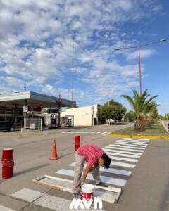 Se están realizando trabajos de pintura de demarcación de sendas peatonales, junto con la renovación de los dibujos ubicados frente al Parque del Ferrocarril, aportando