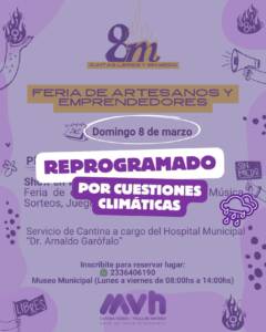 Debido a las condiciones climáticas, la Feria de Artesanos y Emprendedores prevista para este domingo 8 de marzo, en el marco del Día Internacional de