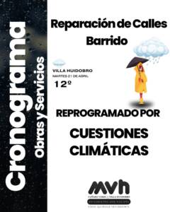 Presentamos el cronograma de Servicios Públicos para la Reparación de calles y Servicio de Barrido, organizado luego de las intensas lluvias registradas para llegar de