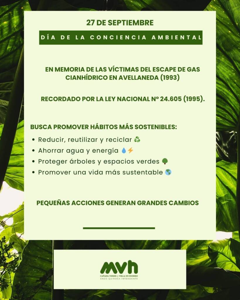 Esta fecha fue establecida por la Ley Nacional N° 24.605 (1995) en memoria del escape de gas cianhídrico ocurrido en Avellaneda en 1993, considerado un grave desastre ambiental.
