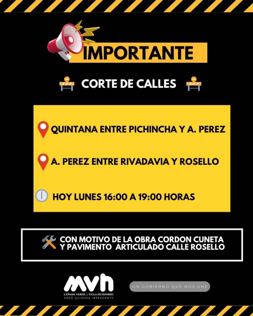 Estaremos realizando movimiento con maquinarias para la la obra: Cordón cuneta y Pavimento articulado de calle Rosello, Cañada Chica.