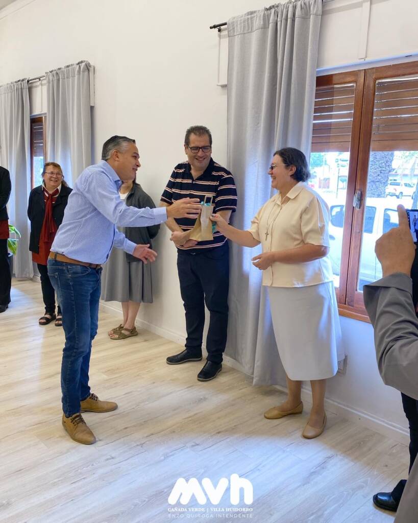 Como parte del recorrido, visitaron la Municipalidad, donde fueron recibidas por el intendente Enzo Quiroga, quien hizo entrega de un presente en reconocimiento y agradecimiento por su visita 🫶🏽