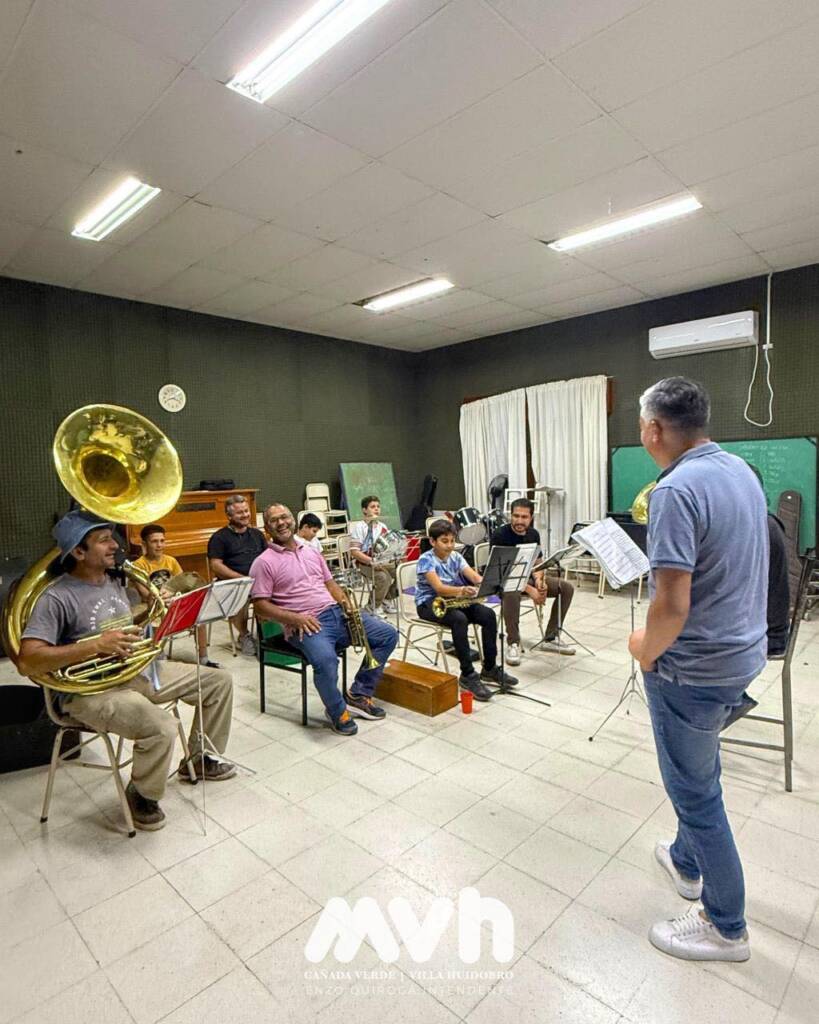 El intendente municipal, Dr. Enzo Quiroga, visitó a los integrantes de la Banda Municipal Maestro Lorenzi, quienes se encuentran ensayando para sus próximas presentaciones. ![]()