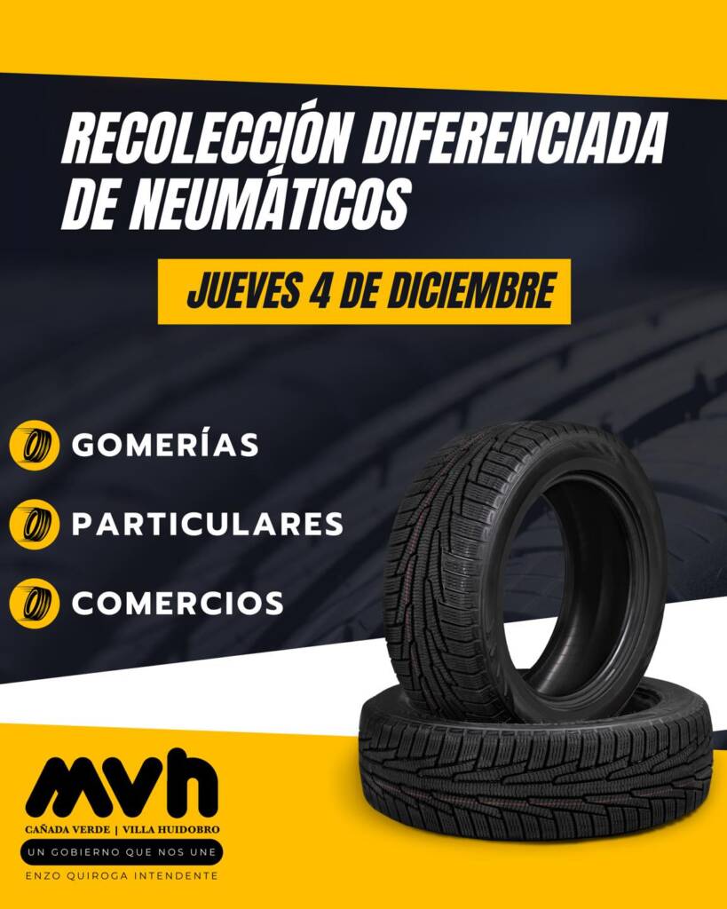 Mañana Jueves 4 de diciembre realizaremos la recolección diferenciada de neumáticos en desuso.