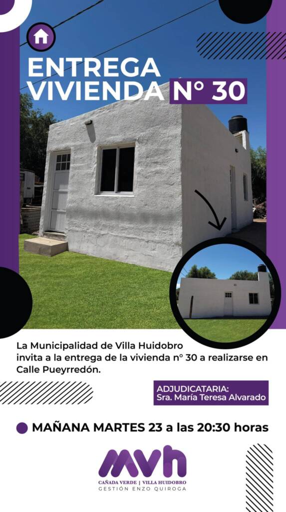 Este martes 23 de diciembre a las 20:30 horas, te invitamos a compartir la entrega de la vivienda N.º 30, ubicada sobre calle Pueyrredón.