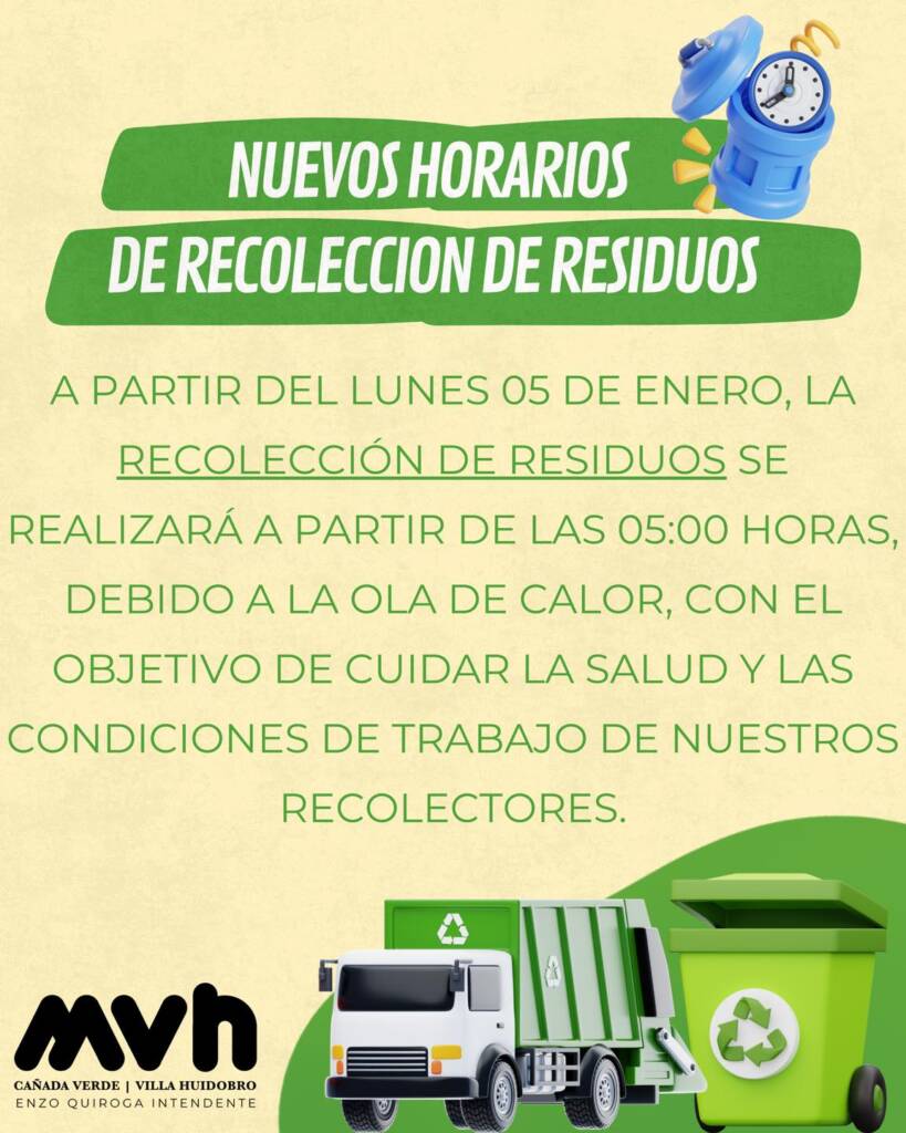 Debido a la ola de calor, a partir del lunes 05 de enero la recolección de residuos se realizará desde las 05:00 horas, con el objetivo de cuidar la salud y las condiciones de trabajo de nuestros recolectores