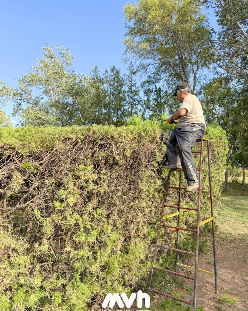 Además se llevó a cabo la poda de arbustibas que forman las características letras de Villa Huidobro ![]()