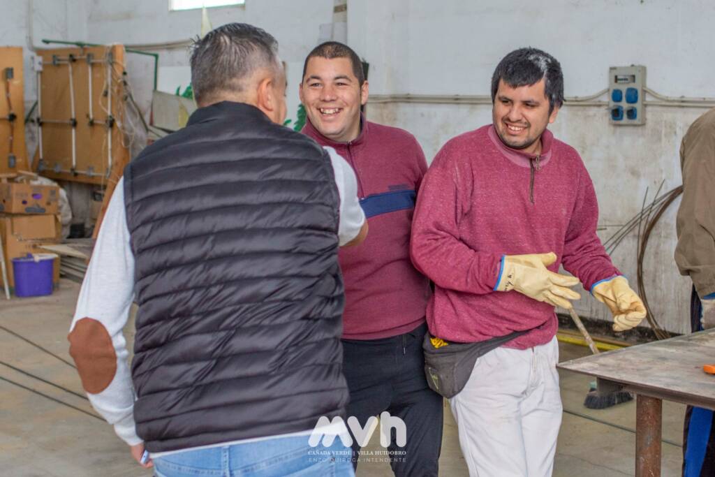 El Intendente Municipal, Dr. Enzo Quiroga, visitó la clase de Herrería que se desarrolla en el Taller Protegido Mi Lugar. Allí, los operarios trabajan en el proyecto “Corazones Verdes”, destinado al reciclado de tapitas con el fin de promover la reutilización y el cuidado del medio ambiente.