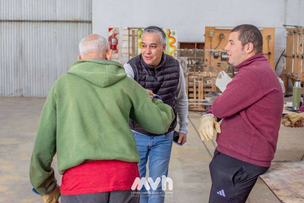 El Intendente Municipal, Dr. Enzo Quiroga, acompañó una jornada en el Taller Protegido Mi Lugar, donde se dicta la clase de herrería. Actualmente, los operarios se encuentran trabajando en el proyecto “Corazones Verdes”, que busca reciclar tapitas y transformarlas en nuevas oportunidades, promoviendo el cuidado del ambiente y la reutilización de materiales.